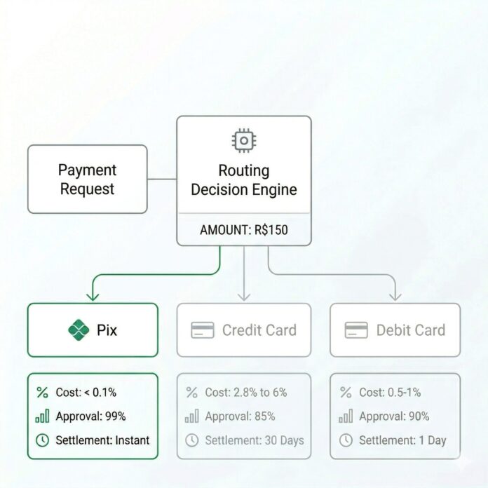 That decision is not neutral because, Pix can push approval close to 100%, while cards in e-commerce sit closer to 70-85%.